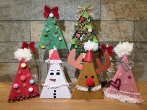 サンタの帽子、トナカイや雪だるまなどの制作や